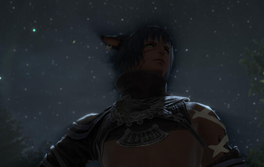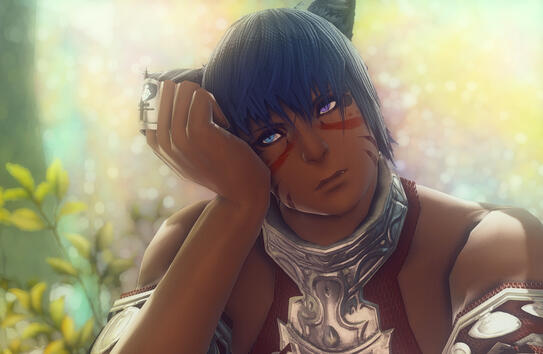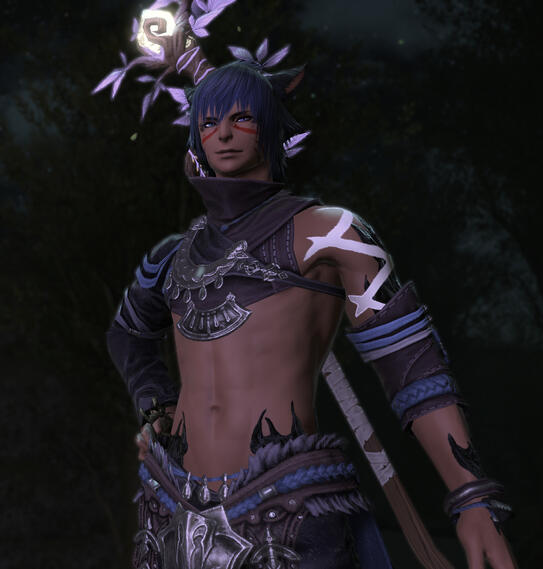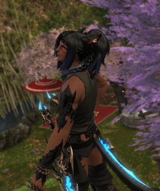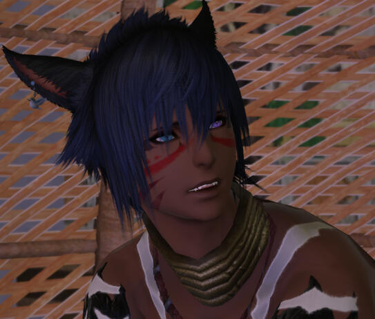 ((TW: There's a ton of dark aspects to his past and if you're sensitive to touchy subjects like alcoholism, abuse, self harm...yeah my boy probably isn't for you. ))Born deep in the Shroud, life immediately started out difficult for him due to his mixed blood. While his mother's clan had forced her to stay instead of leaving with her Xalea lover, they held no love for the child born from that relationship. At the age of only five summers, his mother passed away, leaving him alone. His father had never been able to locate them again, leaving him at the mercy of the clan. They were not kind to him, the other children often bullying him and nothing was ever done to stop it. He was barely fed, leading him to pick up survival skills on his own at a very young age. He swiftly learned foraging and trapping skills, if only to keep himself from starving. When the calamity struck, he was nearing 12 summers. He was completely separated from his clan in the chaos, but certainly found no sadness in that fact. However, wandering on his own proved incredibly difficult, especially in a broken landscape. There came a point where he was taken in by a group that seemed decent enough, people who actually fed and clothed him...but the truth behind his "rescue" was anything but happy. He found himself trapped and forced to work in a pillow house, often the target of the more violent clientele. In order to keep him pliant, he was often either drugged or forced to consume great deals of alcohol, which led to his dependence upon it. For years he was stuck in that cycle of abuse until he finally escaped at somewhere near 16-17 summers. Not even he was certain anymore.He hid on the streets of Ul'dah for a time, eventually taking odd jobs that were often bordering illegal, just to get by. Reading and writing were not considered of importance to those raised in the pillow house, so he can really do neither. His smarts lay solely in survival and street skills. Though when the pressure becomes too much and pressed into a situation that flairs his temper, he can become consumed by a dark force, driven by rage alone. Given enough anger, the darkness can manifest itself in the form of blades or weapons he can wield. In most situations, he doesn't remember what happened, only awaking exhausted and in pain. As time went, the darkness grew stronger, both a comfort and a curse to someone not really sure how to control it. This also led to a lack of aether control, leaving him less likely to be able to wield magic properly or even to teleport without ending up in the wrong place half the time or suffering horrible aether sickness. Thus, he generally prefers walking.Now in his mid 20's, he spends his days taking what odd jobs he can, usually numbed by the copious amounts of alcohol he drinks to drown the past. His desire to learn is dampened by the fact that most people shun him and that he rarely trusts anyone. However, on those rare occasions that he does finally trust someone, they will find a strong ally, though perhaps with slightly questionable morals. He wanders around whatever parts of Eorzea he can afford to get to, but still has a longing to travel to Othard and the Steppe...if only to see the place his father supposedly came from and search for some kind of answer.